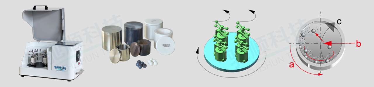The crushing and grinding of materials are mainly realized by high-speed friction and collision between grinding balls. When the plate rotates, the grinding tank with sample material and grinding ball rotates at a high speed around its central axis in the opposite direction. At a certain speed, the centrifugal force separates the sample and the grinding ball from the inner wall of the grinding tank. The grinding ball shuttles back and forth at high speed in the tank, and the sample is further ground by hitting the tank wall. In addition, the impact collision between grinding balls also accelerates the consumption of sample size. The main disk of the solar wheel of the PULVERIZER 500 four-tank high-energy planetary ball mill has a rotating speed of up to 400rpm and a centrifugal force of 22g.