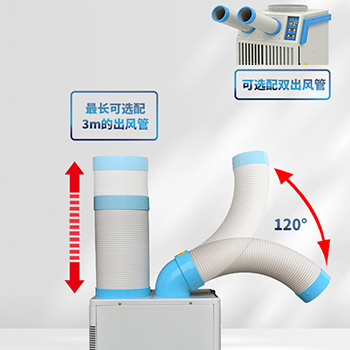 冷風管可在一定范圍內任意彎曲,大角度旋轉,并可選配雙出風管。