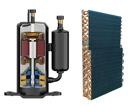 采用品牌旋轉式封閉壓縮機與親水鋁箔換熱器及內螺紋銅管,真材實料的全銅質線圈使得制冷速度更快,效率更高,壽命更長。