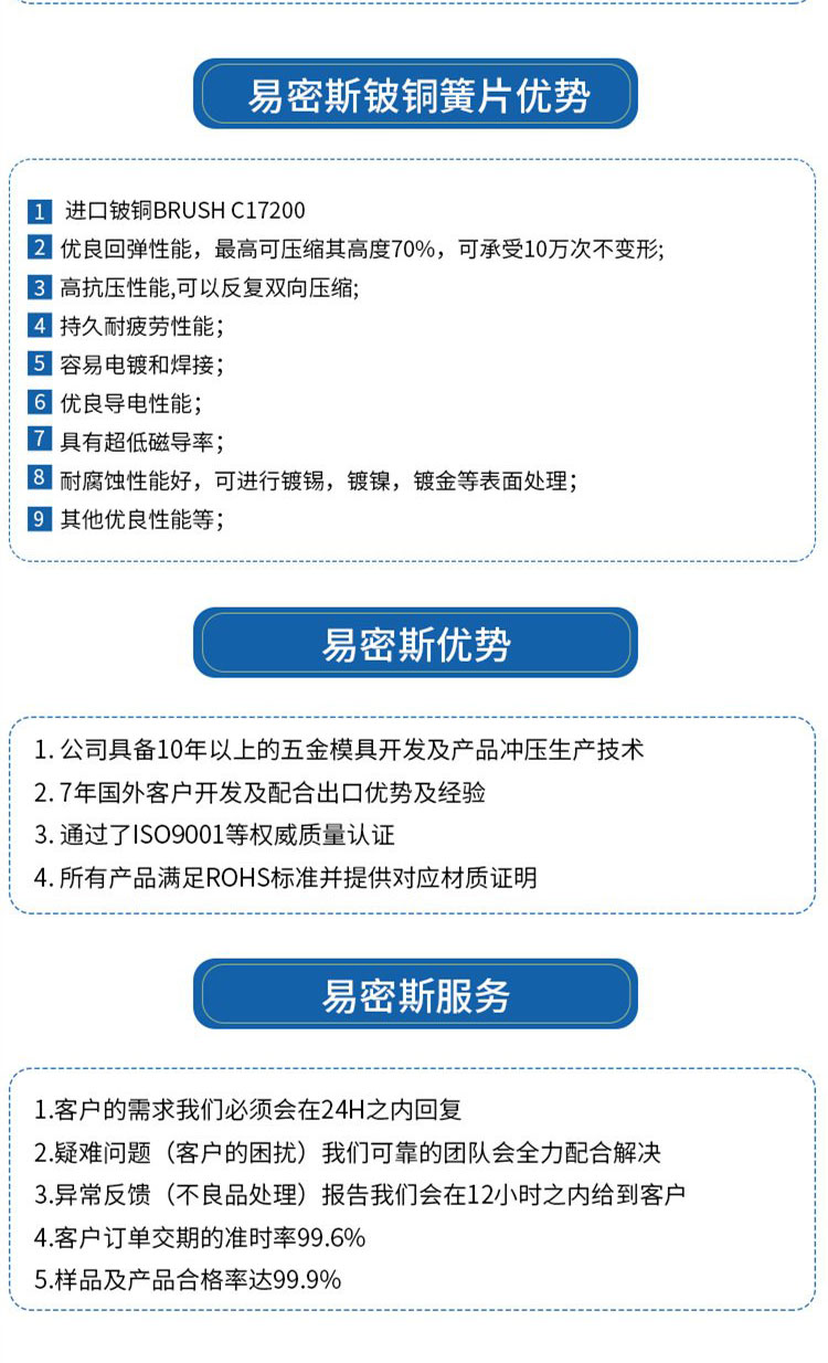 我們致力于鈹銅簧片領(lǐng)域,成為行業(yè)專家,勇做行業(yè)的領(lǐng)跑者。 誠(chéng)信從事一切活動(dòng),成為社會(huì)快樂的創(chuàng)造者。